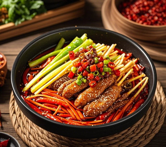 制作麻辣凉粉、夫妻肺片、钵钵鸡等麻辣小吃时,麻辣红油是不可或缺的灵魂调料。将凉粉切块,浇上麻辣红油、生抽、醋、蒜泥水等调料,撒上葱花和芝麻,一碗美味的麻辣凉粉就大功告成。夫妻肺片、钵钵鸡等食材浸泡在由麻辣红油调制的汤汁中,吸收麻辣鲜香的味道,令人回味无穷。