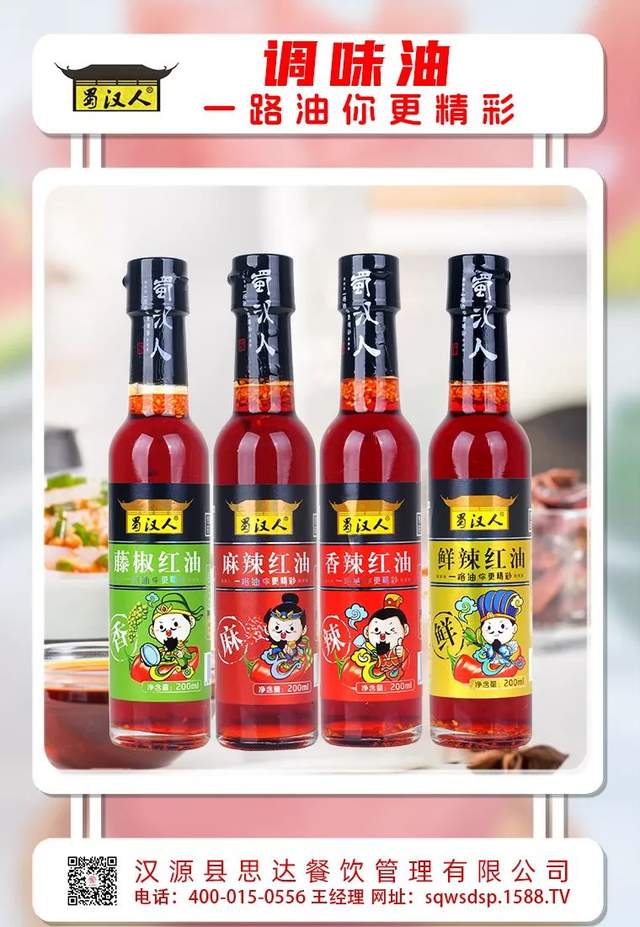 在这股浪潮中,汉源县思达餐饮管理有限公司携旗下三款重磅产品 ——蜀汉人・香辣红油、蜀汉人・麻辣红油、蜀汉人・鲜辣红油强势来袭,为调味油市场注入了全新活力。