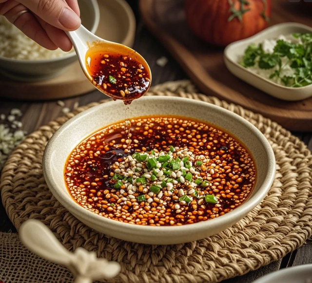 无论是吃饺子、馄饨,还是白切鸡、白灼虾,香辣红油都是蘸料主角。将红油与蚝油、香油、葱花、香菜等调料混合,调制出专属的蘸料,每一口食物蘸上这香辣浓郁的酱汁,都能带来满满的幸福感。